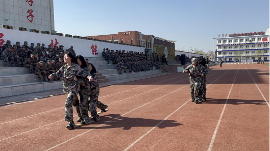 比赛采用计时制,赛道全长100米,起点和终点线清晰可见。在比赛过程中,各队队员充分发扬团结协作的精神,相互配合、协同前进。他们步伐一致,口号响亮,仿佛融为一体,向着终点奋力冲刺。有的队员不小心摔倒了,但立刻爬起来,继续投入比赛,他们的坚韧和毅力赢得了现场观众的阵阵掌声。
